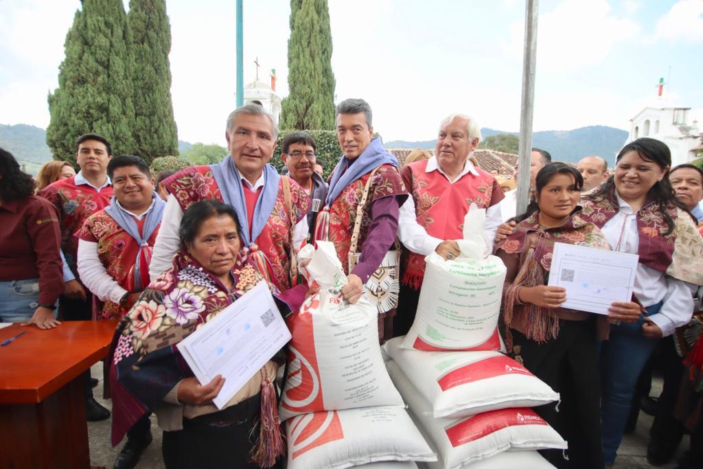 Los secretarios de Agricultura y Desarrollo Rural, Víctor Villalobos Arámbula, y de Gobernación, Adán Augusto López Hernández, pusieron en marcha el programa prioritario Fertilizantes para el Bienestar en Chiapas, en beneficio de más de 280 mil productores de ajonjolí grano, cacahuate, cacao, calabaza, frijol, maíz, milpa y sorgo, principalmente.