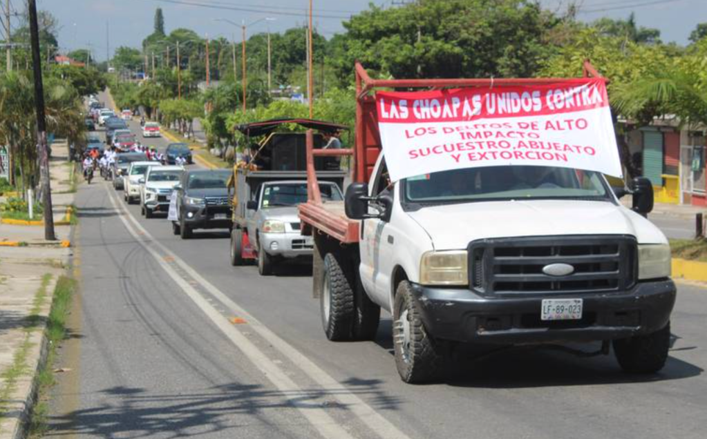 «Las Choapas Unidos contra los delitos de alto impacto, secuestro abigeato y extorsión», se podía leer en los carteles que llevaron; en otro decía: «Por la tranquilidad de las familias choapenses», “Comerciantes Unidos por la paz de Las Choapas. No al cobro de piso», «Por amor a las Choapas».