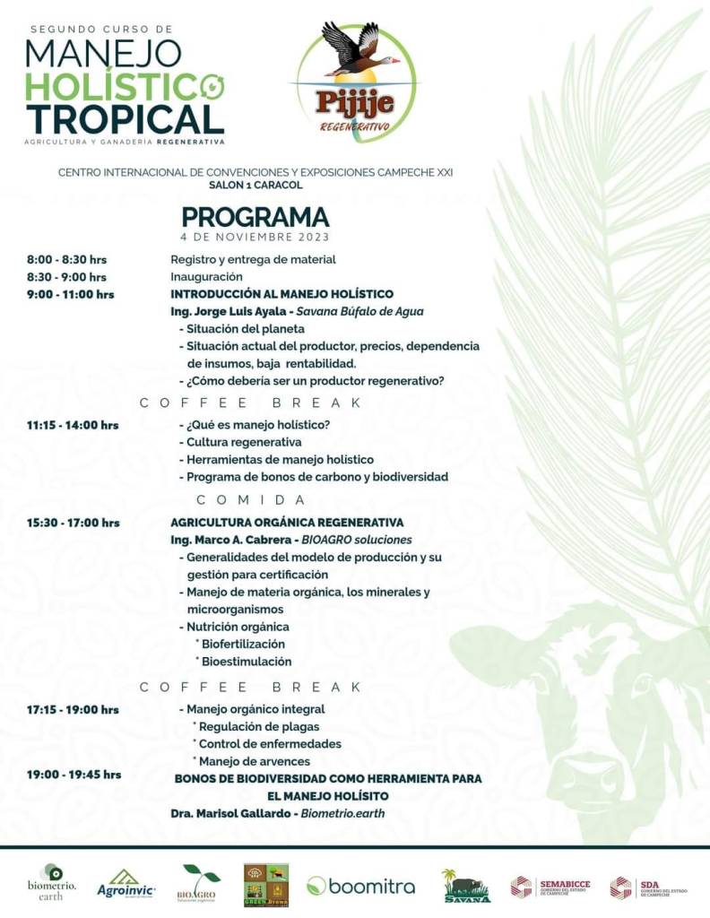 A partir de este sábado 4 de Noviembre da inicio el segundo Curso de Manejo Holístico para ganaderos y agricultores en las instalaciones del Centro de Convenciones de Campeche.
