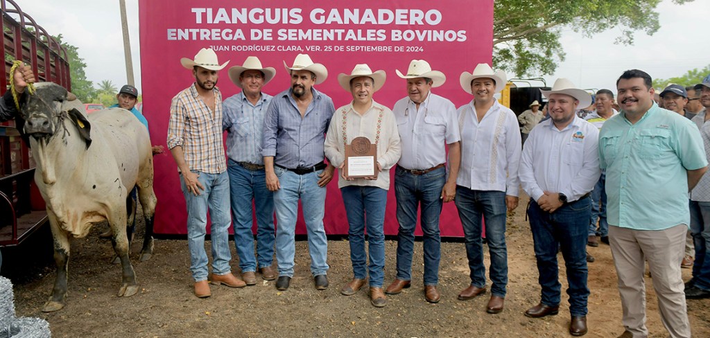 Reunidas las asociaciones ganaderas que comprenden 47 localidades de 18 municipios de la Cuenca, Los Tuxtlas y la región Olmeca, el mandatario encabezó la entrega de insumos y 80 sementales de alto valor genético en razas como sardo negro, sardo negro mocho, Brahman, Guzerat y Suiz-bu, donde la aportación estatal es de 30 mil pesos por ejemplar.