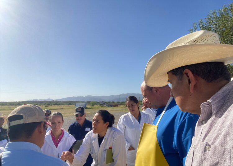 Funcionarios del Gobierno Federal y del Estado, responsables de sanidad animal y ganadería, así como del Departamento de Agricultura de Estados Unidos, realizan inspecciones de campo a las asociaciones ganaderas de Coahuila con el fin de evaluar la aplicación de programas de sanidad animal en el ganado de exportación.