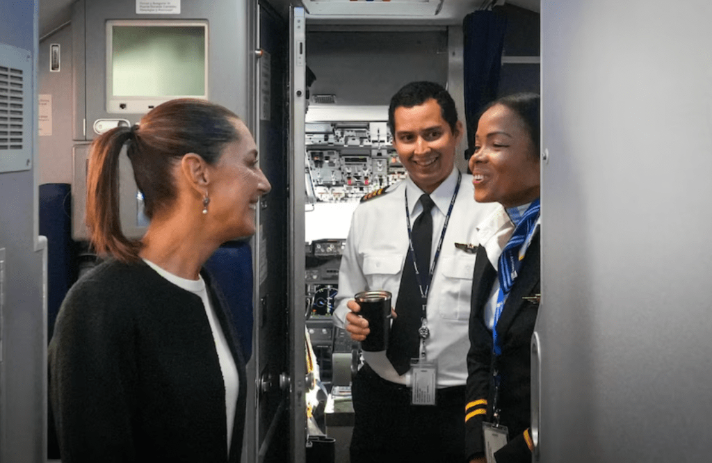 “Saliendo de la Ciudad de México hacia Brasil para participar mañana en la Cumbre de Líderes del G20″, escribió la presidente Sheinbaum Pardo en su cuenta de X, antes Twitter, acompañada de dos fotografías, una de ellas en donde saluda al personal de la aerolínea Copa Airlines que va en el vuelo.