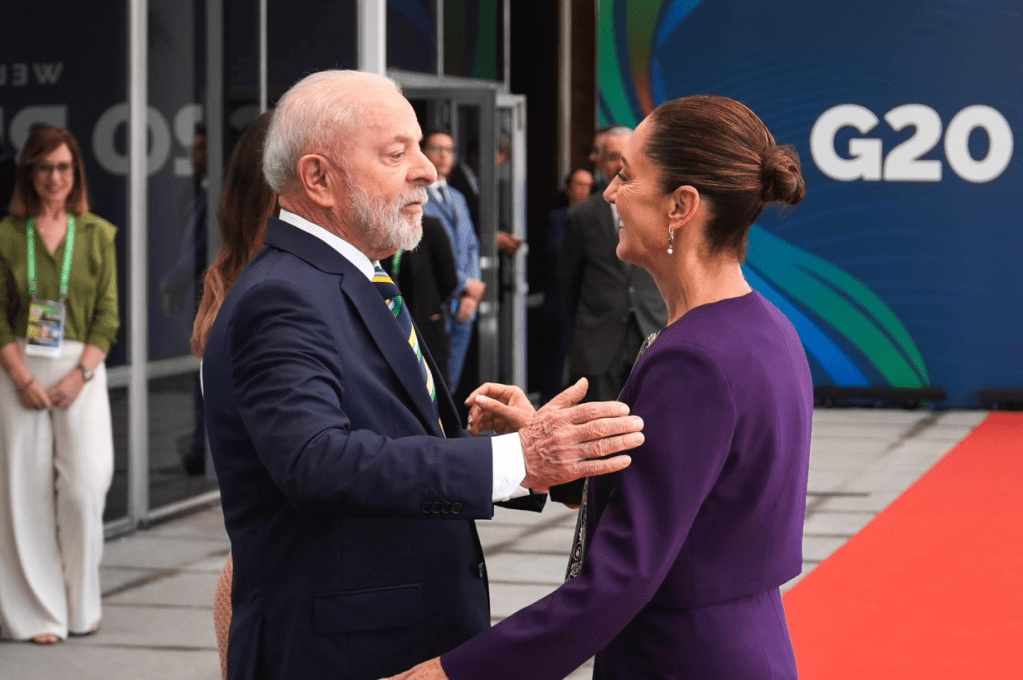 “Saludamos al presidente de Brasil, Luiz Inácio Lula da Silva, al llegar a la Cumbre de Líderes del G20. En las reuniones abordaremos temas como el combate a la pobreza, el hambre y el cambio climático”, escribió Claudia Sheinbaum en X, junto a una foto donde aparece saludando al presidente brasileño.