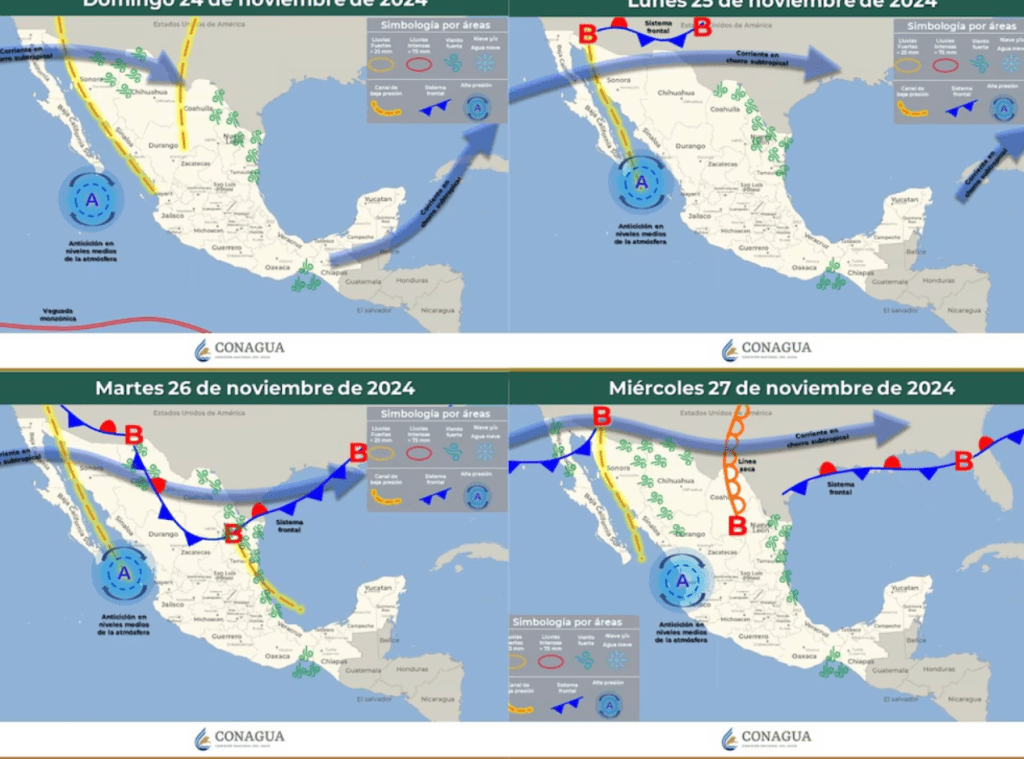 - Lluvias aisladas (0.1 a 5 mm): Baja California, Veracruz y Tabasco.