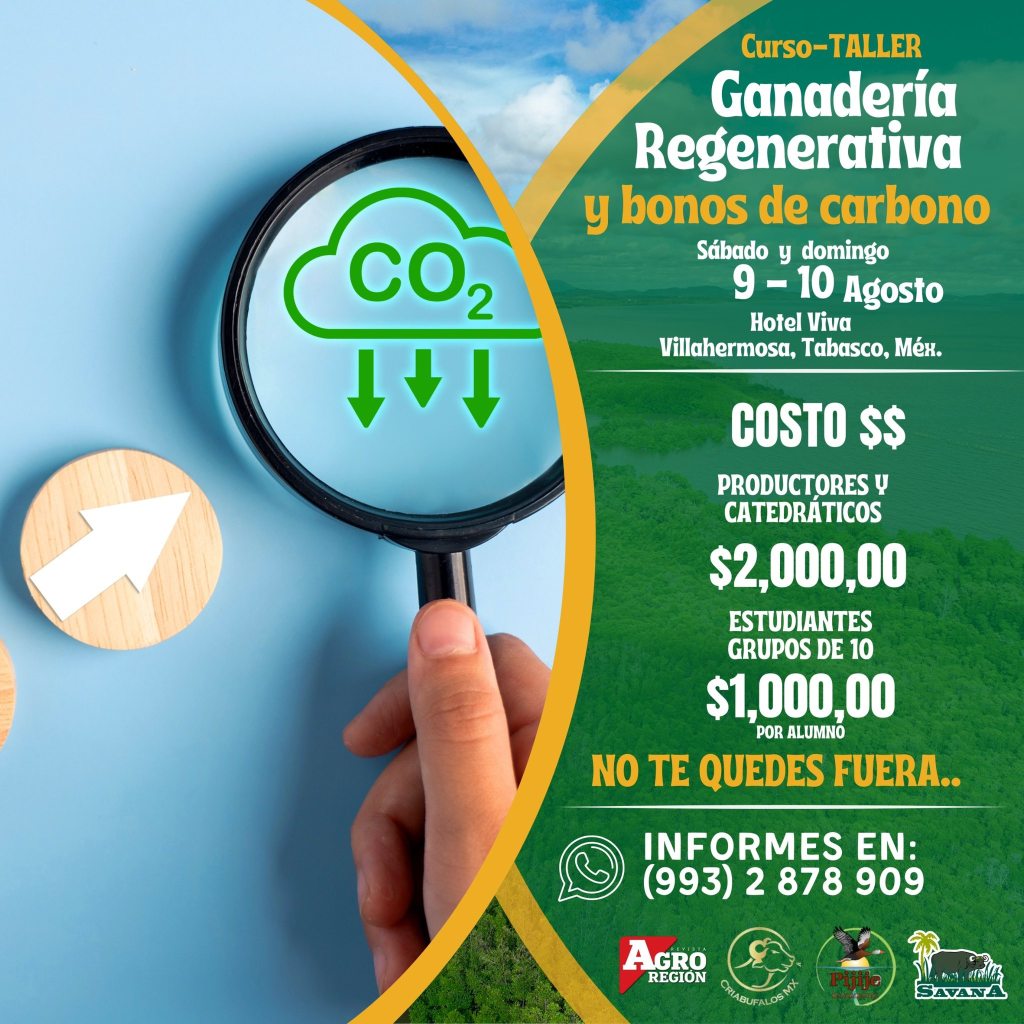 Bajo este contexto, la empresa Pijije Regenerativo, liderada por el Ing. Jorge Luis Ayala, referente nacional en agricultura y ganadería sustentable, invita al Curso «Ganadería Regenerativa y Bonos de Carbono», que se llevará a cabo los días 9 y 10 de agosto de 2025 en el Hotel Calinda Viva de Villahermosa, Tabasco. Este evento busca capacitar a productores, técnicos y profesionales del sector en las estrategias más avanzadas para implementar sistemas ganaderos sostenibles y acceder a mercados de carbono.